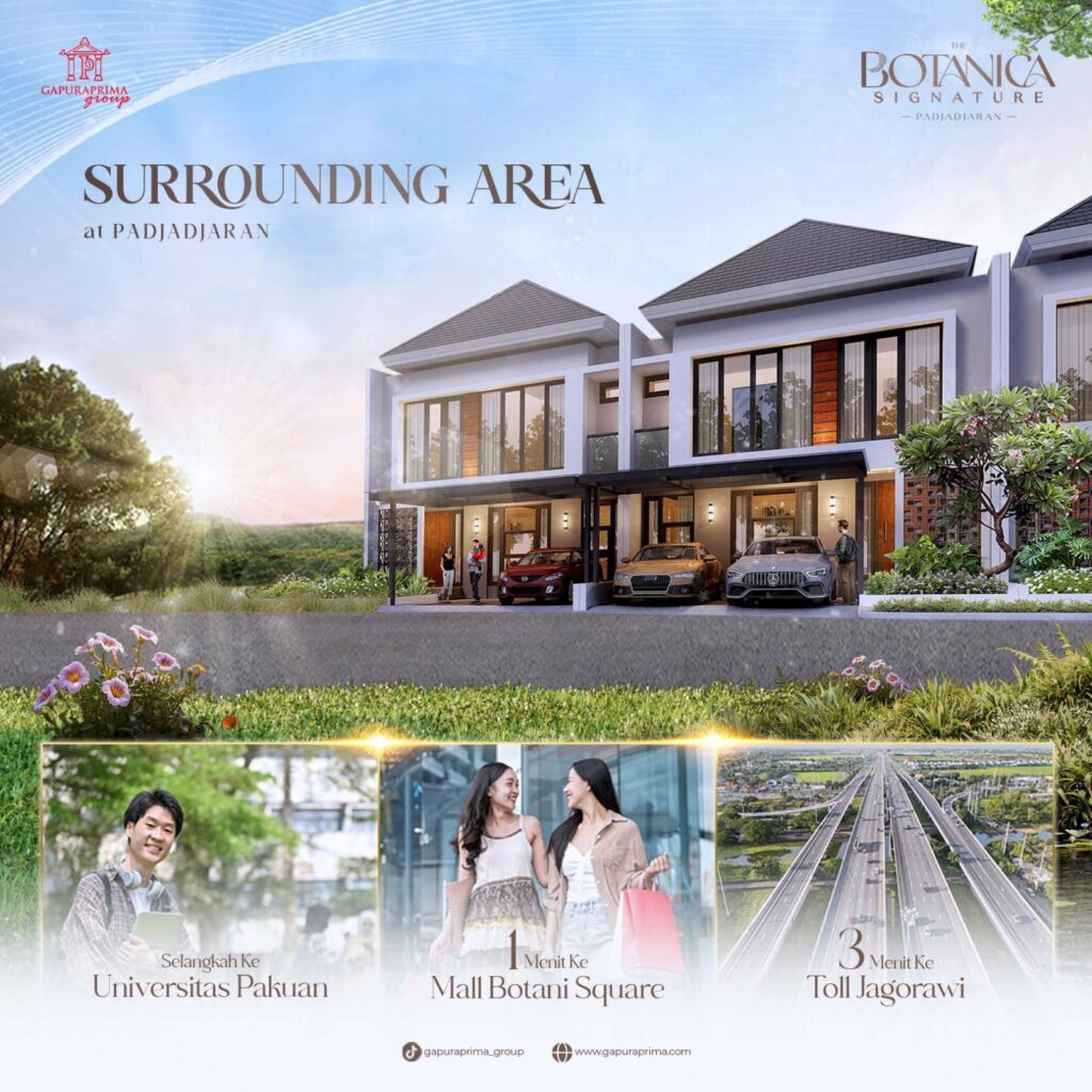 Gapura Prima Group menghadirkan inovasi terbaru di pusat Kota Bogor dengan “The Botanica Signature Pajajaran“. Hunian ini mengusung desain arsitektur Tropical Modern Minimalis serta konsep Smart Compact Living yang menekankan kenyamanan, keamanan, dan fungsionalitas. Dilengkapi dengan fasilitas eksklusif seperti Private Clubhouse, jogging track, area komersial, dan sistem satu gerbang, memberikan keamanan dan kemudahan maksimal bagi Anda dan keluarga.